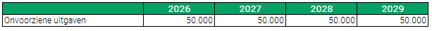 Op basis van wet- en regelgeving is in de begroting een stelpost onvoorzien opgenomen. Dit is € 50.000 per jaar. Om van de stelpost onvoorzien gebruik te maken, moet het doel voldoen aan de 3 O’s, onvoorzien, onvermijdbaar en onuitstelbaar.